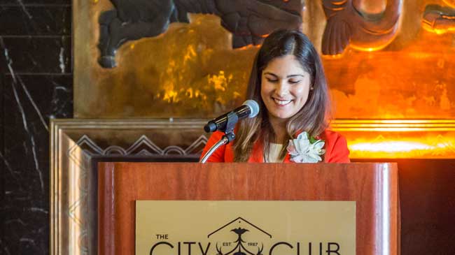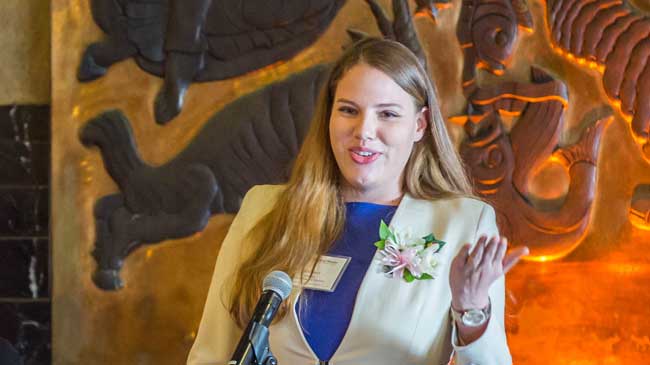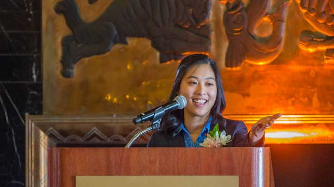In addition to recognizing the scholarship winners, the FWSF announced a special award, called the “Lela Jahn Make a Difference” grant. This award, which began in 2016, was made possible through the generous donation of the late Lela Jahn, the 2000 Financial Woman of the Year honoree, and her husband, Don Bayer. Lela lived a purposeful life focused on advancing women with “passion, concern, and commitment.” For her dedication to improving the lives of others through education, this year’s recipient is Monica Rin, a graduate student at the University of San Francisco. Born in a Thai refugee camp into a family of survivors of the Khmer Rouge genocide, Monica has always had a hunger for education. In Cambodia, where she spent her youth, Monica has already co-founded two social enterprises, one focusing on primary education and the second with an emphasis on international post-secondary education.